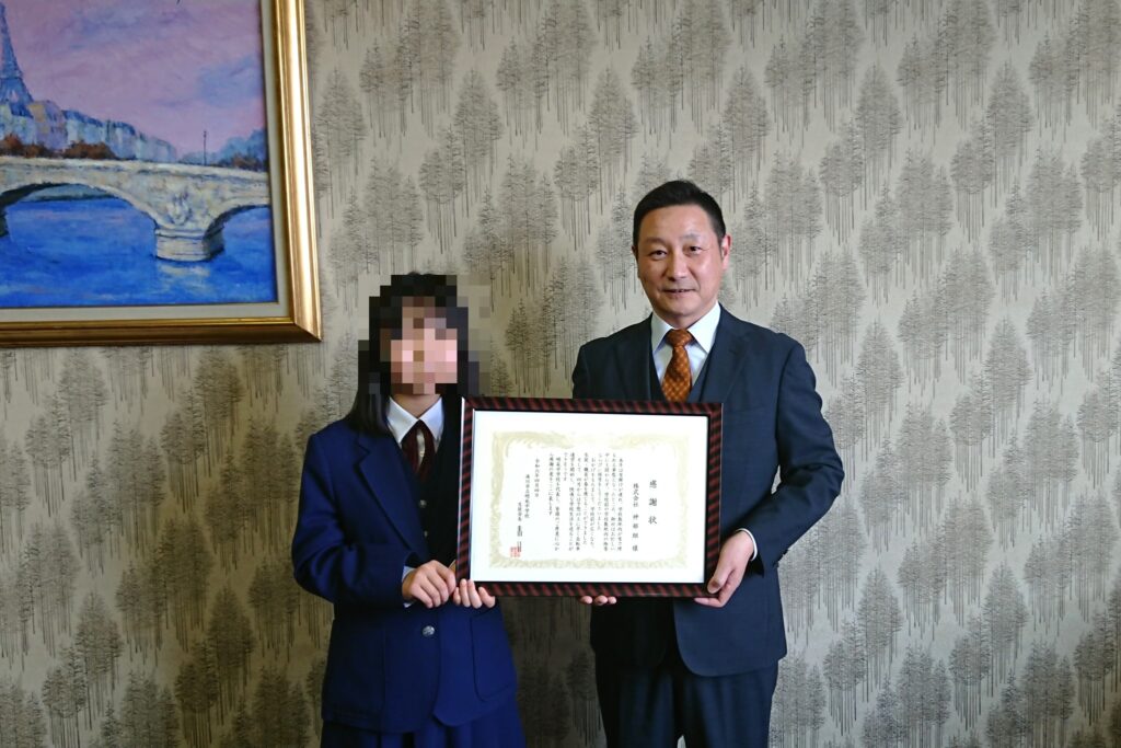 滝川市立明苑中学校さまより先生2名と生徒会長さんが来社され、先日の職員駐車場から生徒駐輪場までの排雪作業に対する感謝状と、改めて感謝のお言葉ををいただきました!今年は道路の残雪が多いため前年より遅く4月中旬より自転車通学を開始されるそうです🚲